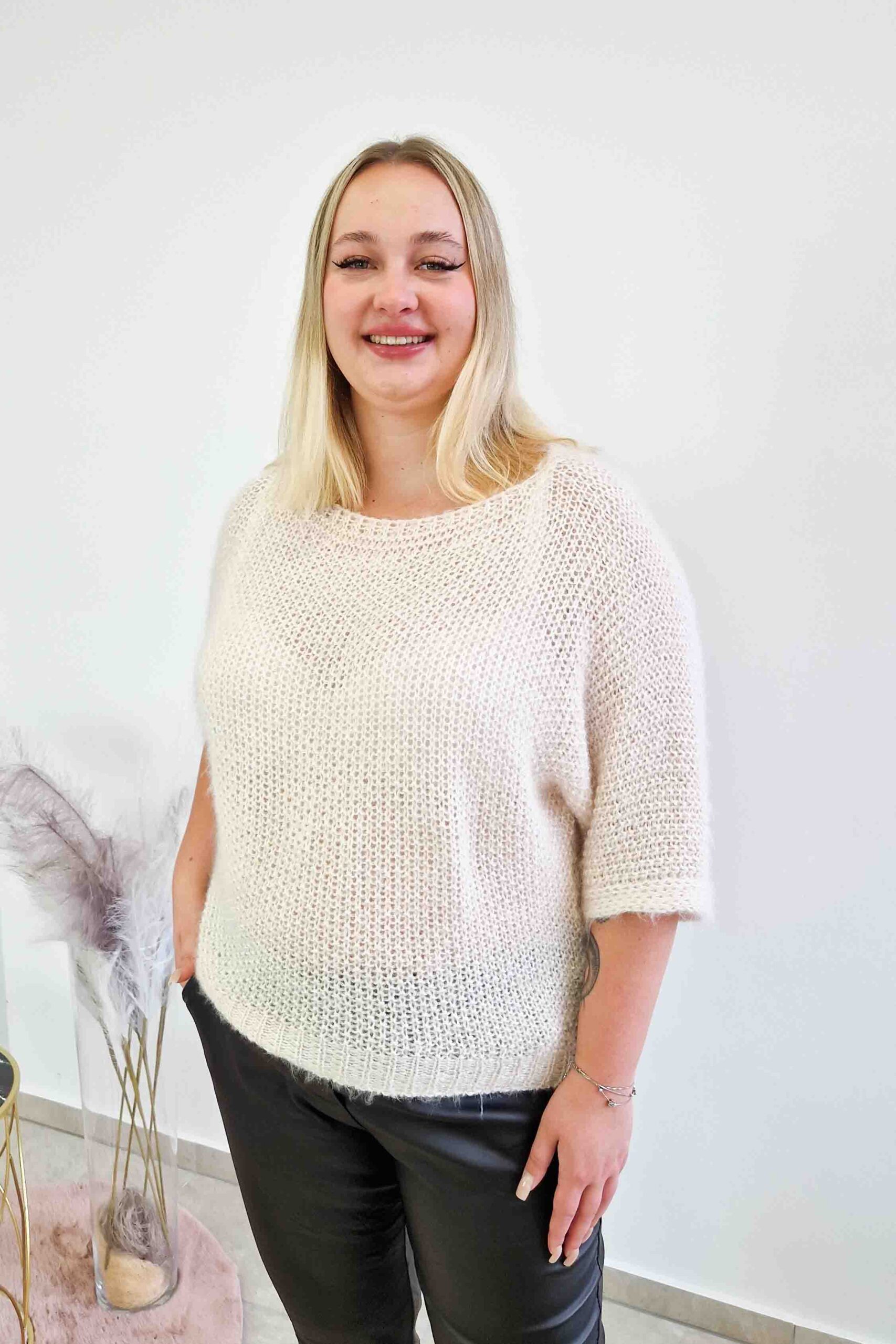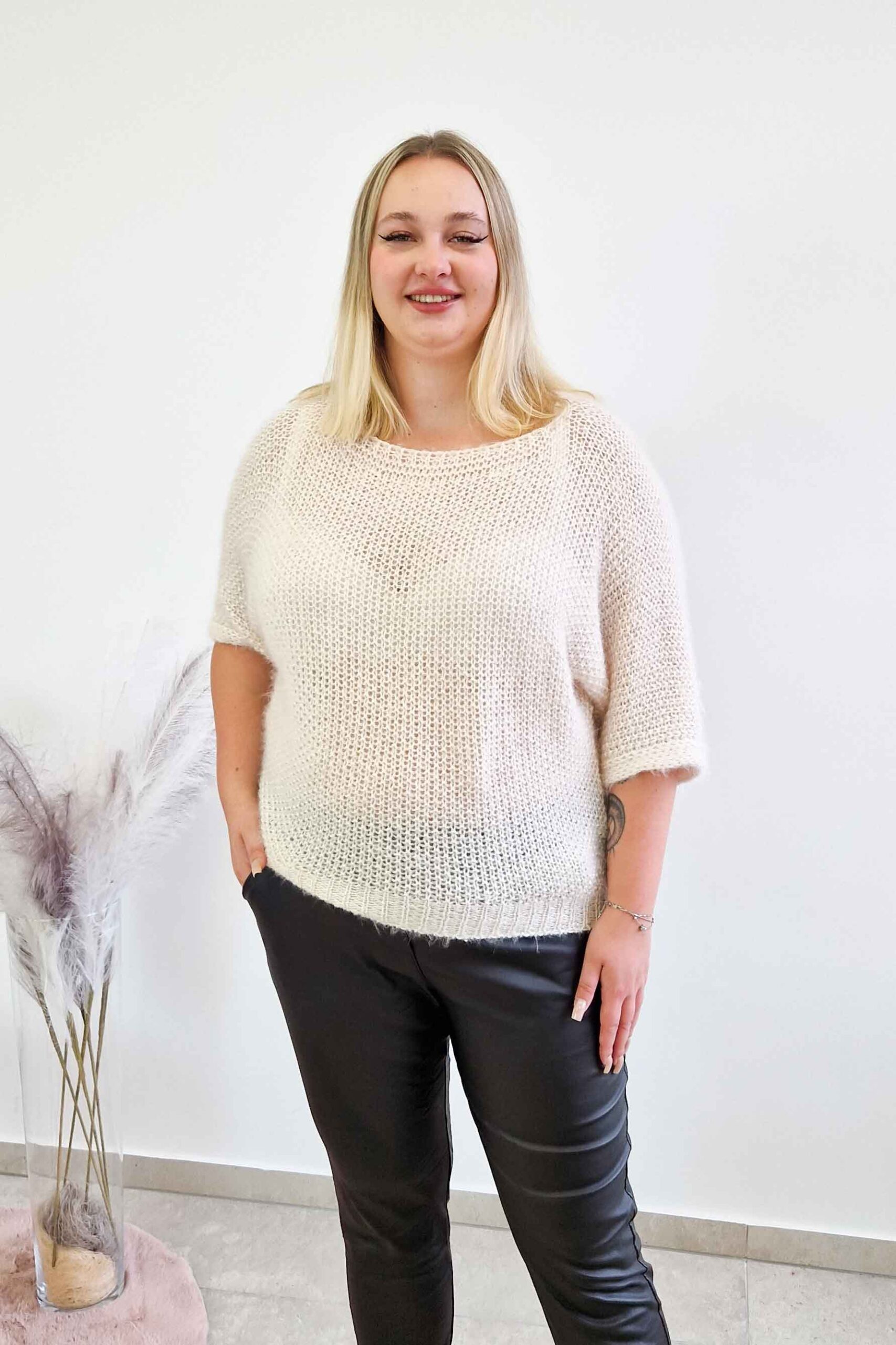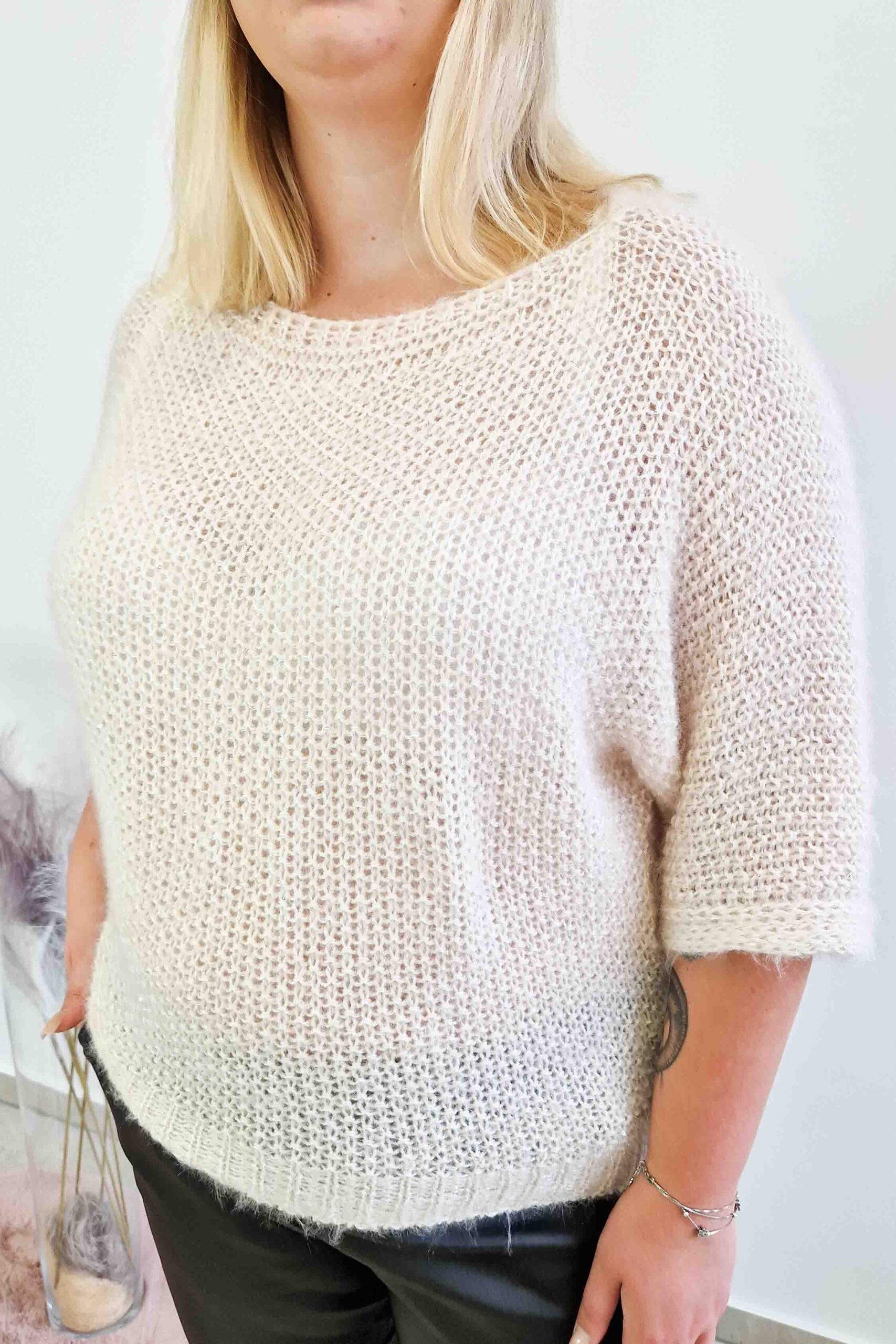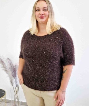 Dzięki rękawom 3/4 oraz okrągłemu dekoltowi, świetnie sprawdzi się zarówno na co dzień, jak i podczas wyjątkowych okazji. Dostępny w kolorach kremowym i czekoladowym, będzie doskonałym wyborem na sezon jesienno-zimowy.