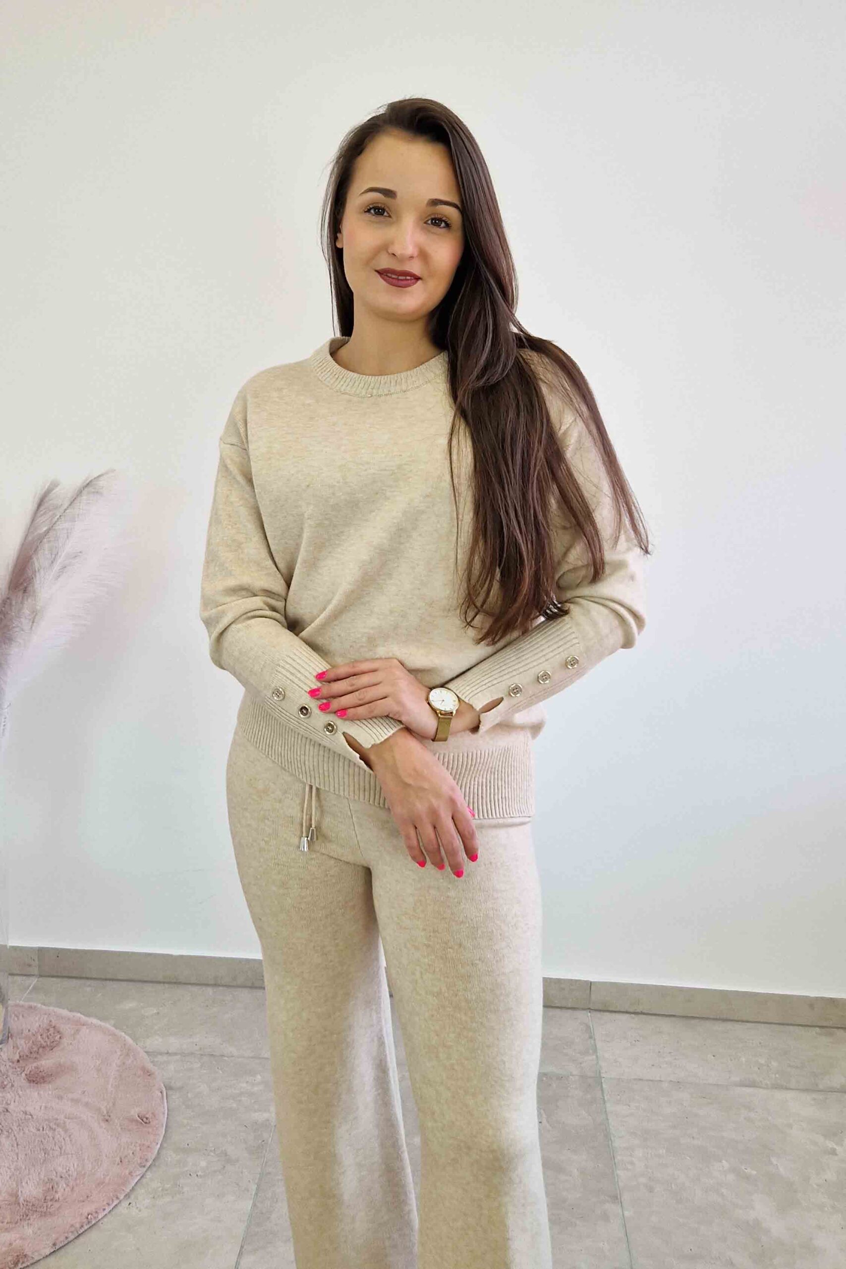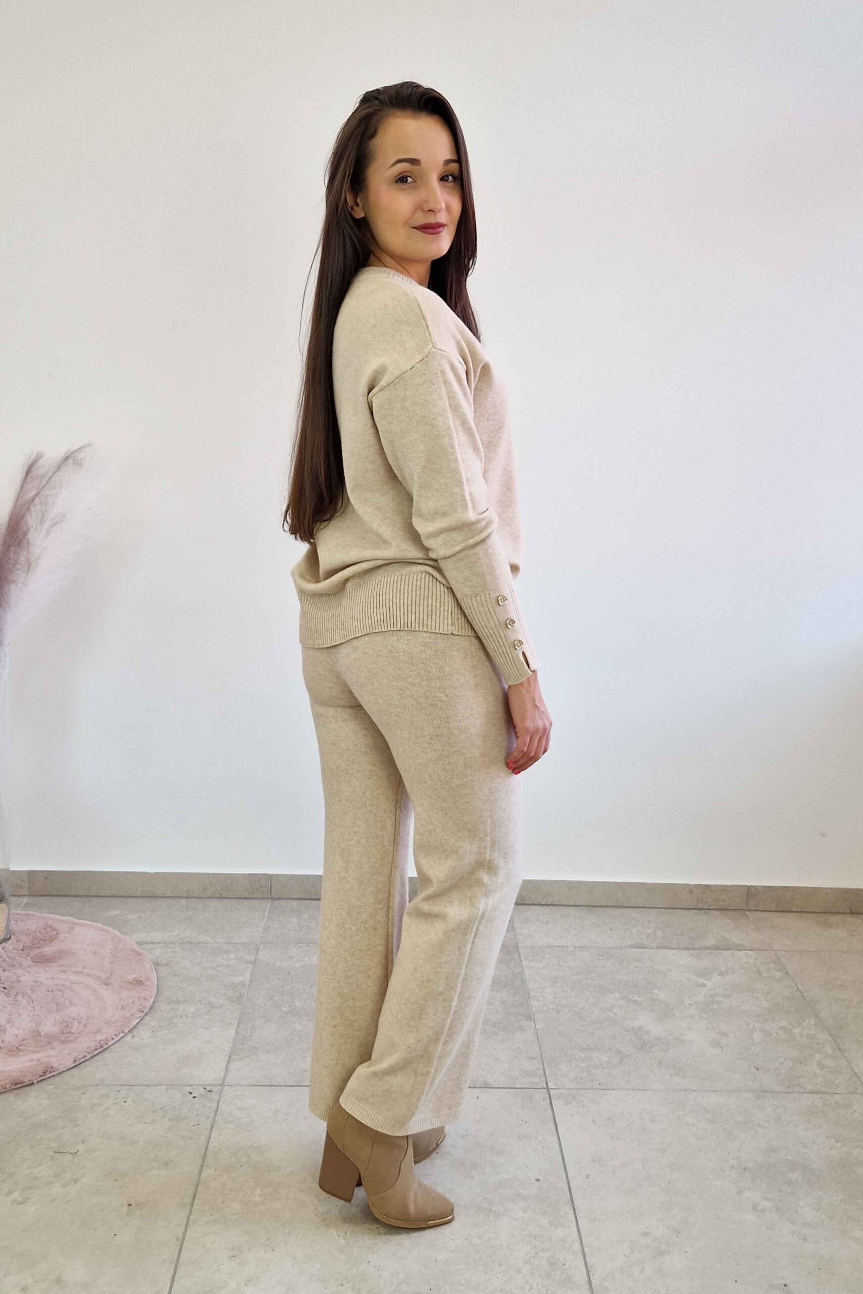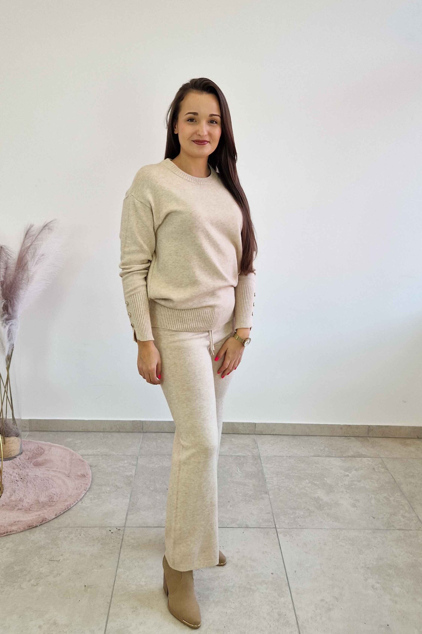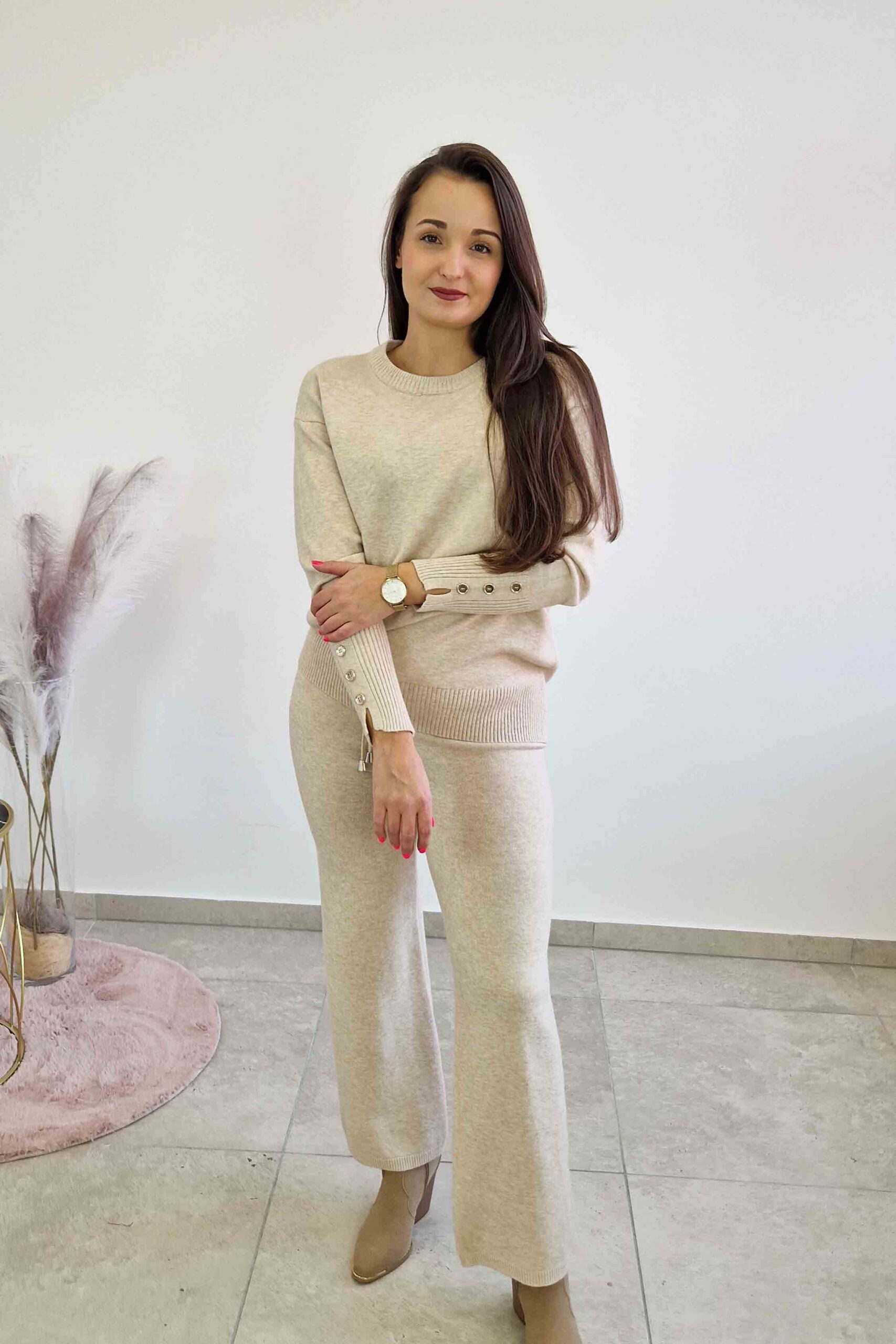 Sweterkowy Komplet Damski Sweterek i Spodnie Beżowy