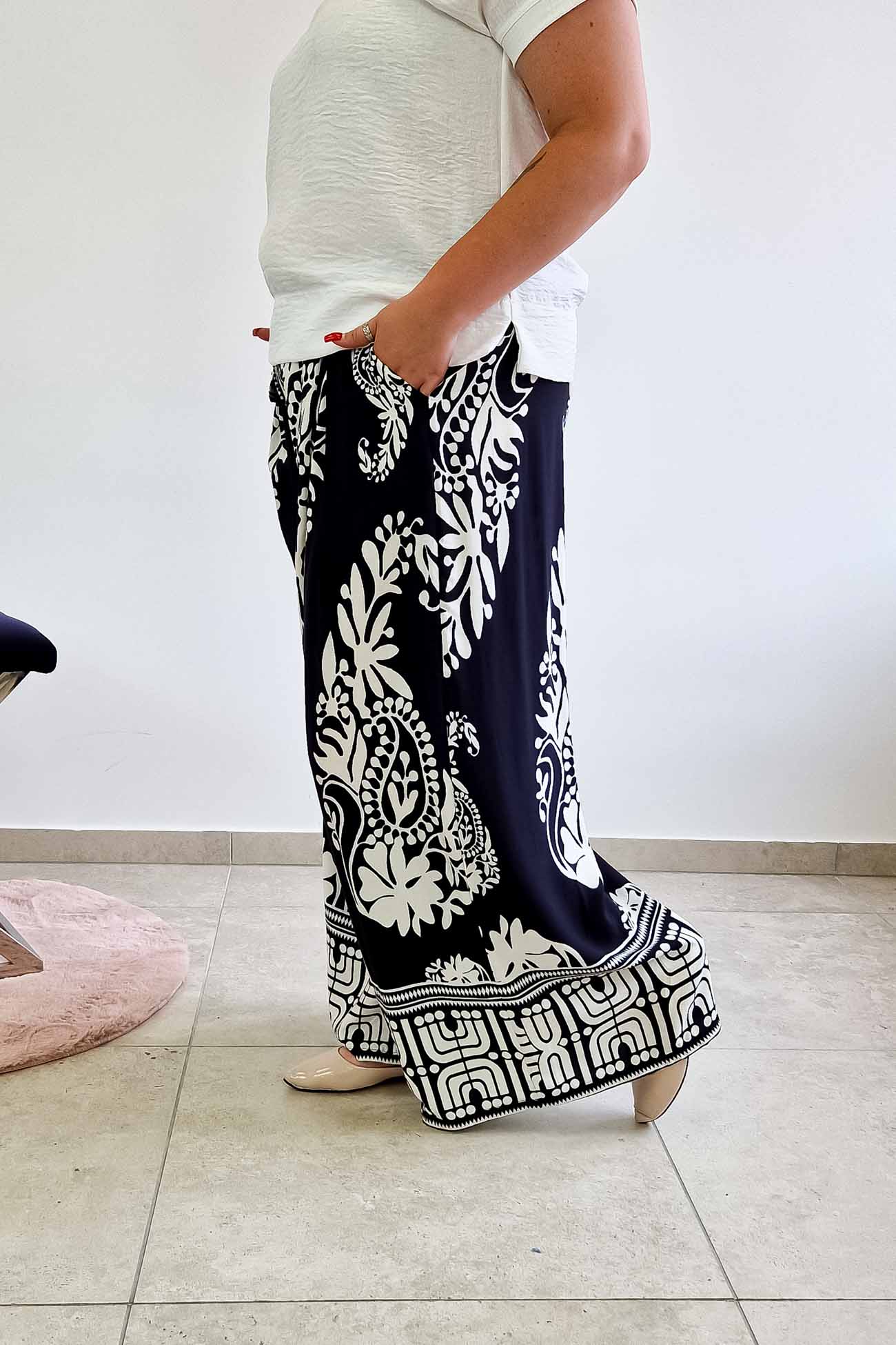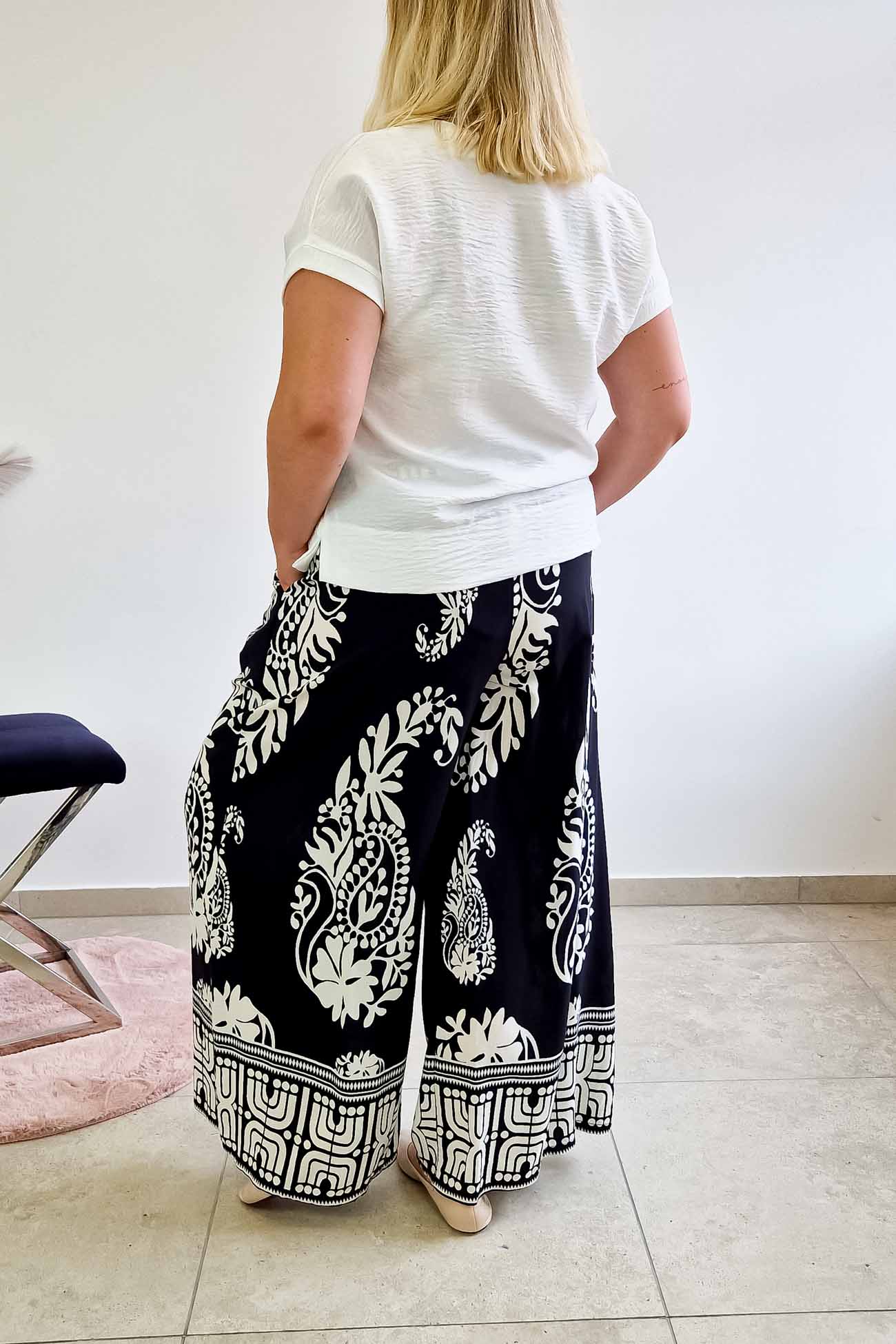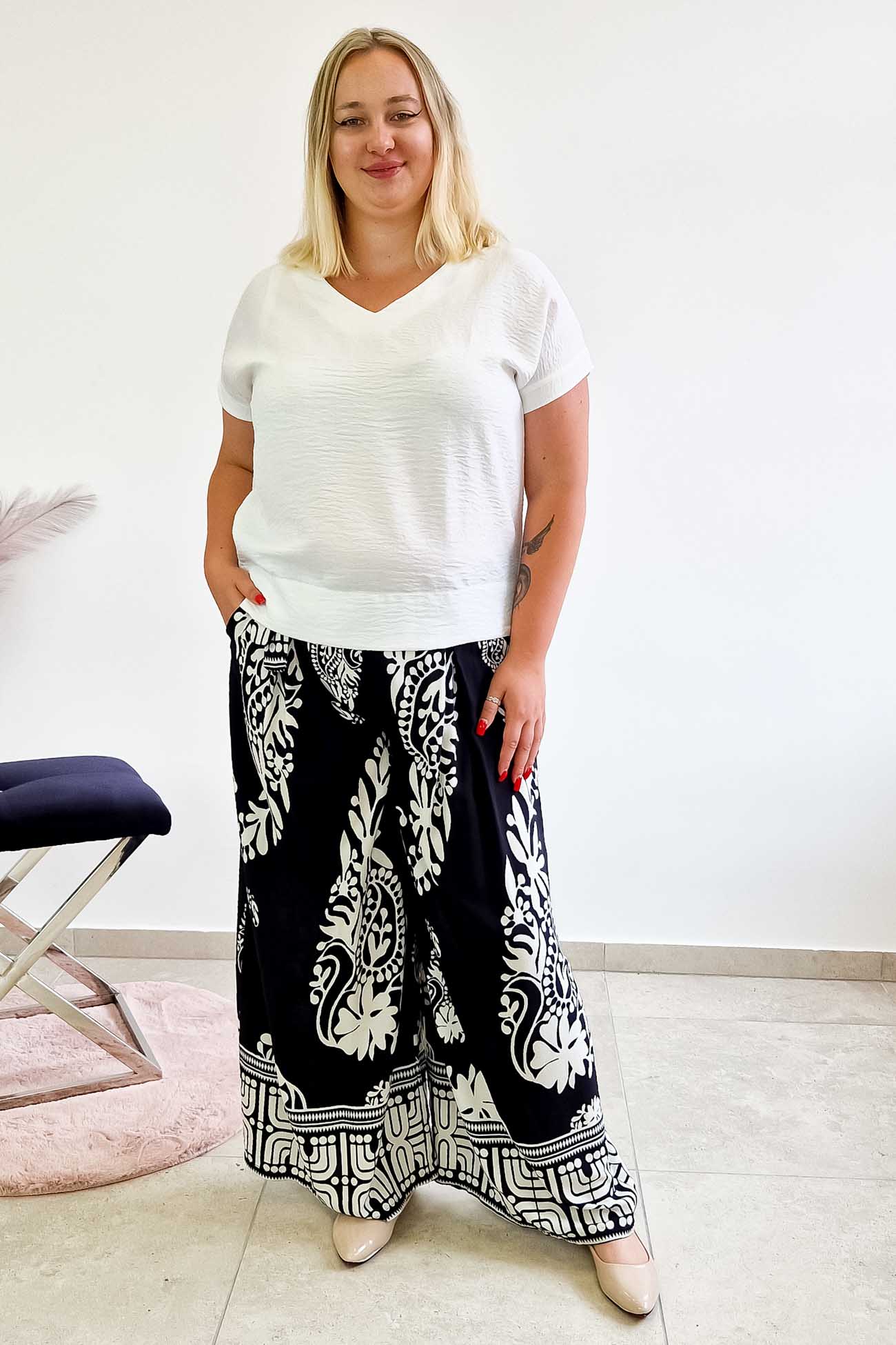 Ich wyjątkowy print i zwiewny fason sprawiają, że sprawdzą się zarówno na co dzień, jak i podczas bardziej eleganckich wyjść. Noś je do pracy, na spacer lub na letnie spotkania z przyjaciółkami – zawsze z nutą luzu i klasy.