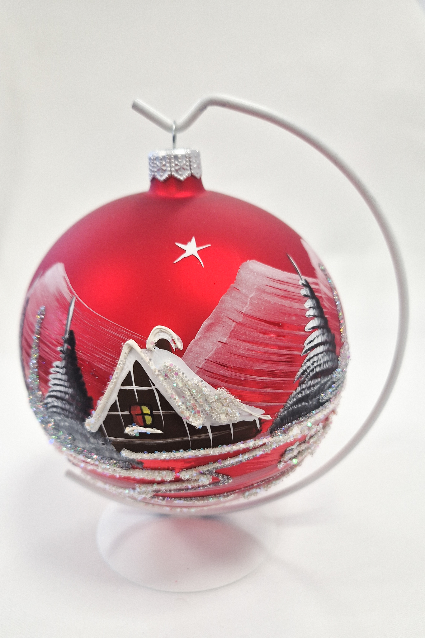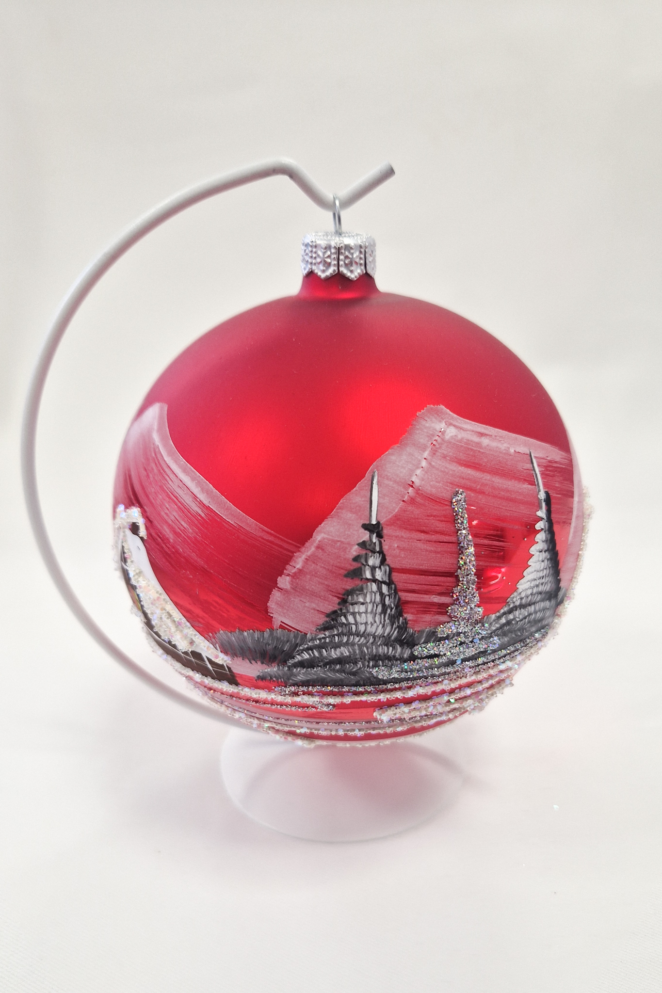 Dodaj swojemu wnętrzu odrobinę magii i elegancji dzięki, ręcznie malowanej bombce świątecznej ze stojakiem. Ta wyjątkowa ozdoba o wysokości zachwyca starannie odwzorowanymi zimowymi pejzażami – sceneriami z zaśnieżonymi domkami, lasami i szczegółami, które wprowadzają niepowtarzalny świąteczny klimat. Każda bombka to małe dzieło sztuki, ręcznie wykonane z dbałością o każdy detal, dzięki czemu każda jest unikalna i jedyna w swoim rodzaju.
