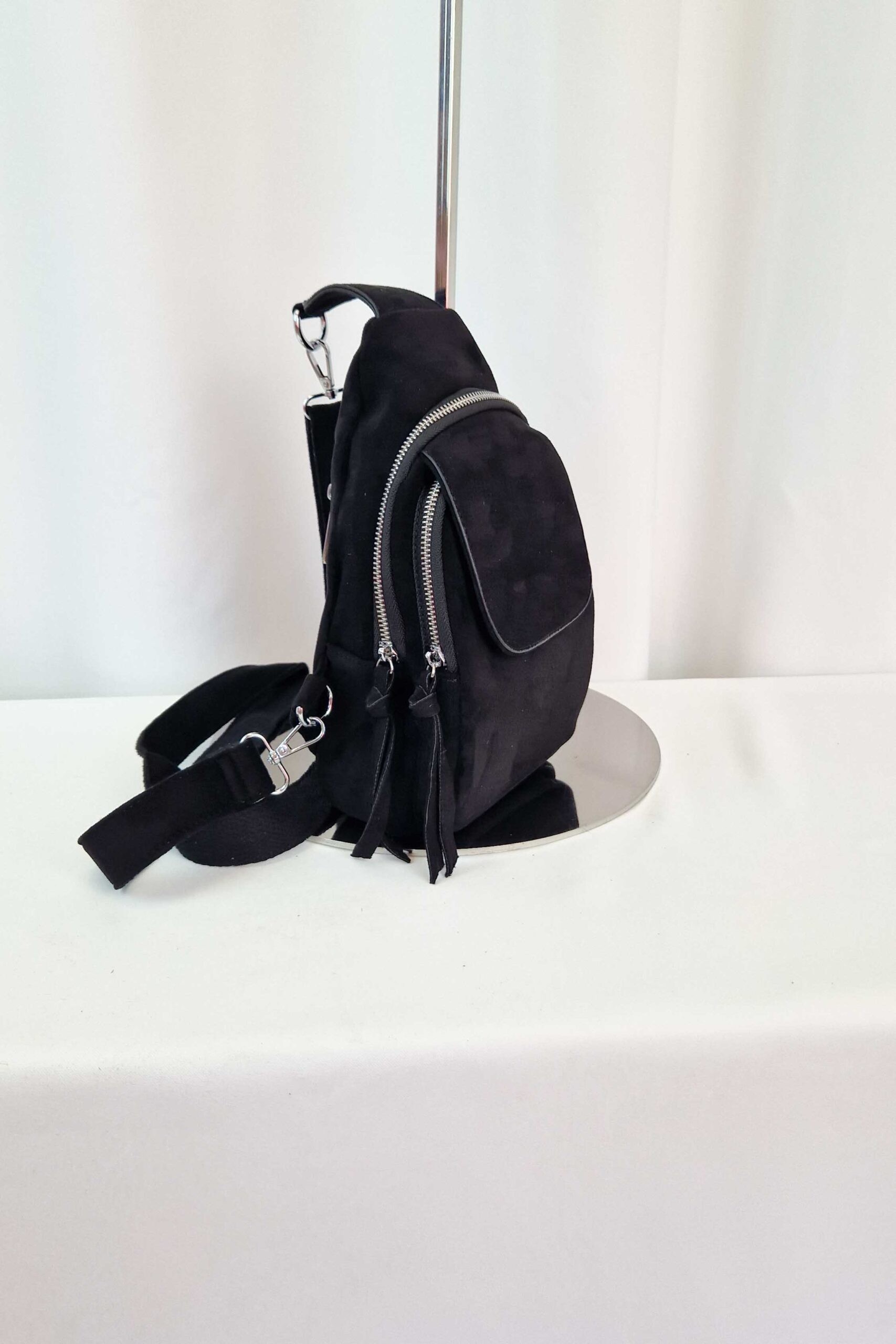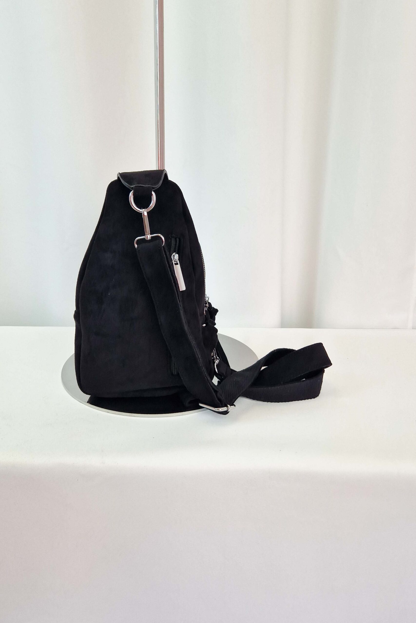 Dzięki kompaktowemu rozmiarowi i lekkiej konstrukcji ta zamszowa listonoszka-plecak sprawdzi się w pracy, na spacerze, w podróży czy na spotkaniu ze znajomymi. To jeden z tych dodatków, które bez problemu wkomponujesz w różne stylizacje – od sportowych po bardziej eleganckie.