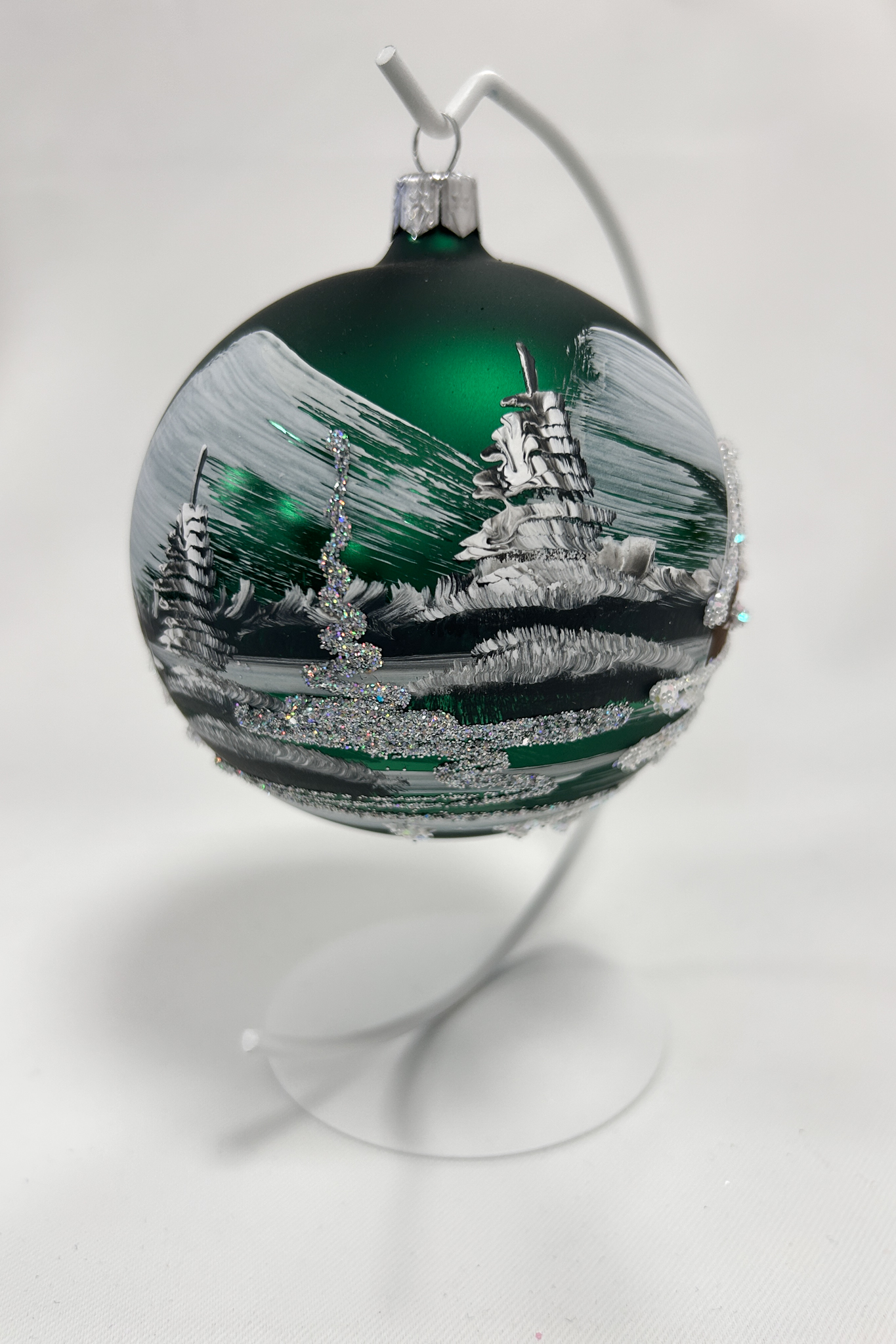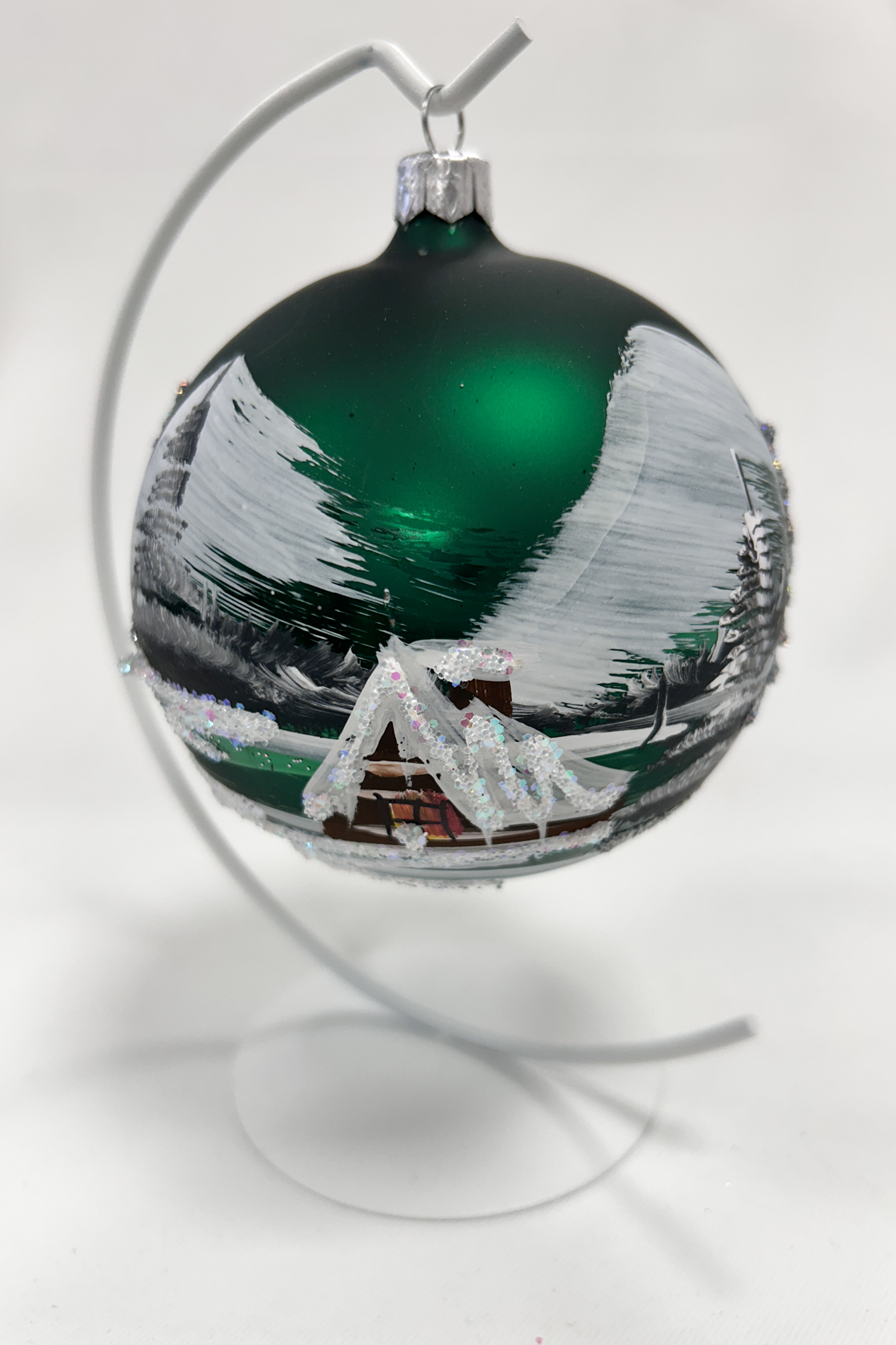 Dodaj swojemu wnętrzu odrobinę magii i elegancji dzięki, ręcznie malowanej bombce świątecznej ze stojakiem. Ta wyjątkowa ozdoba o wysokości zachwyca starannie odwzorowanymi zimowymi pejzażami – sceneriami z zaśnieżonymi domkami, lasami i szczegółami, które wprowadzają niepowtarzalny świąteczny klimat. Każda bombka to małe dzieło sztuki, ręcznie wykonane z dbałością o każdy detal, dzięki czemu każda jest unikalna i jedyna w swoim rodzaju.