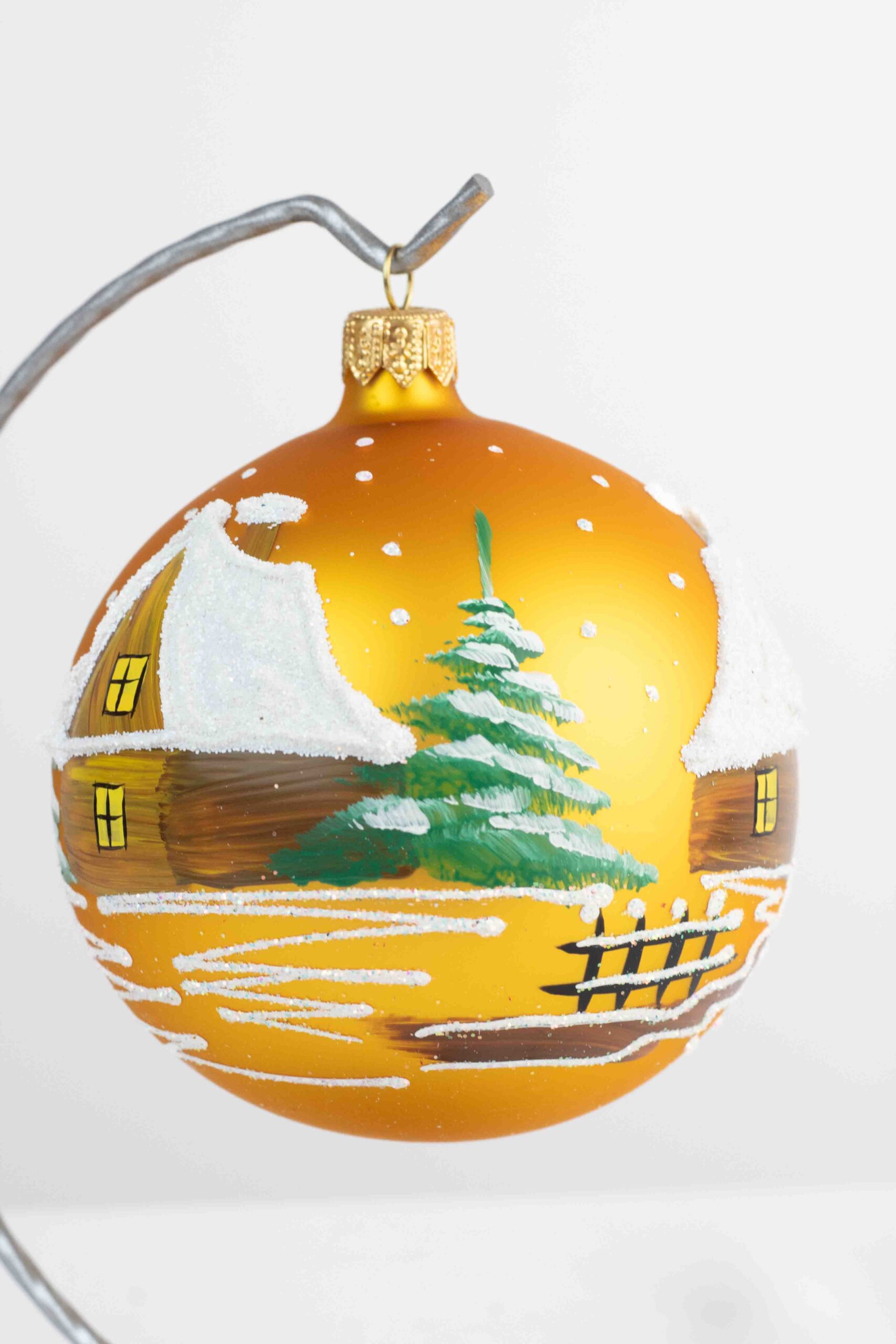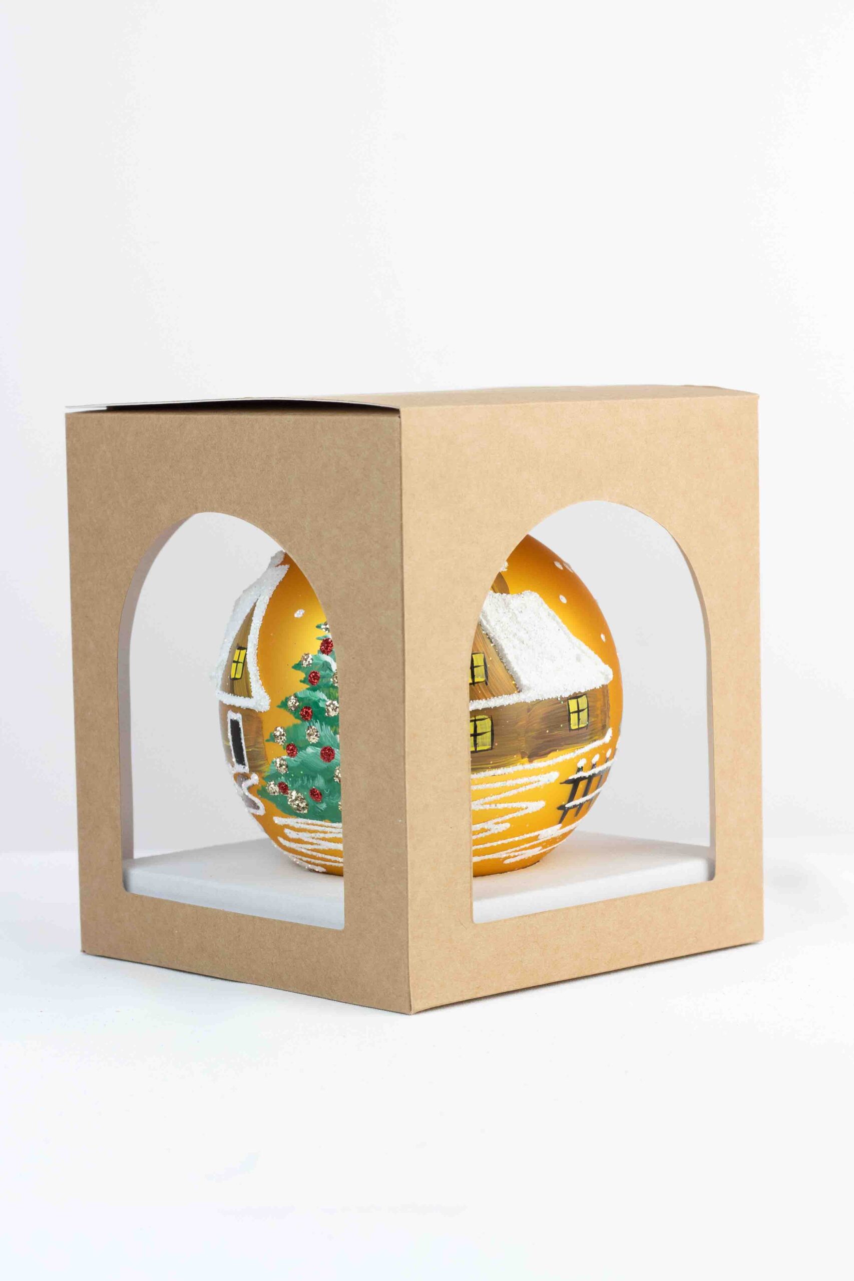 Dodaj swojemu wnętrzu odrobinę magii i elegancji dzięki, ręcznie malowanej bombce świątecznej ze stojakiem. Ta wyjątkowa ozdoba o wysokości zachwyca starannie odwzorowanymi zimowymi pejzażami – sceneriami z zaśnieżonymi domkami, lasami i szczegółami, które wprowadzają niepowtarzalny świąteczny klimat. Każda bombka to małe dzieło sztuki, ręcznie wykonane z dbałością o każdy detal, dzięki czemu każda jest unikalna i jedyna w swoim rodzaju.